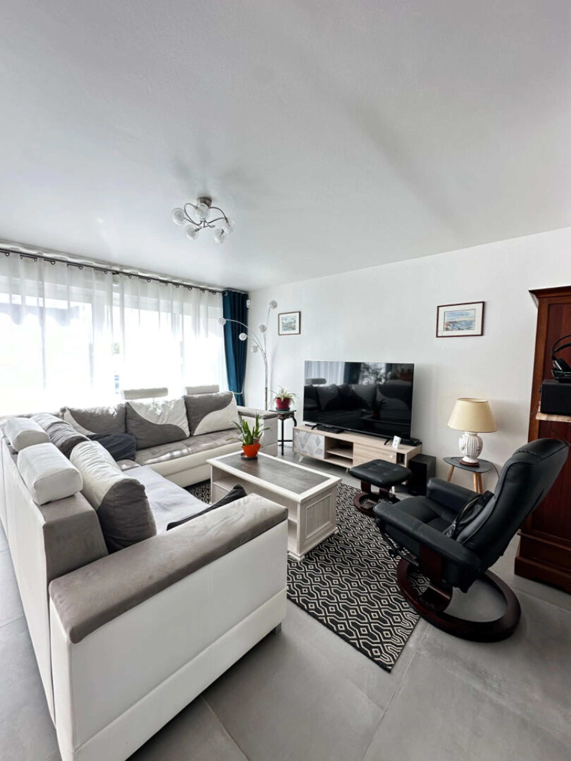 D'une surface d'environ 93 m² entièrement rénovée, ce bien vous séduira dès l'entrée avec son grand séjour lumineux ouvert sur une cuisine contemporaine aménagée et équipée. Les deux belles chambres et le bureau offrent de beaux volumes, parfaits pour un cadre de vie confortable. La salle d'eau moderne complète cet espace fonctionnel et chaleureux.