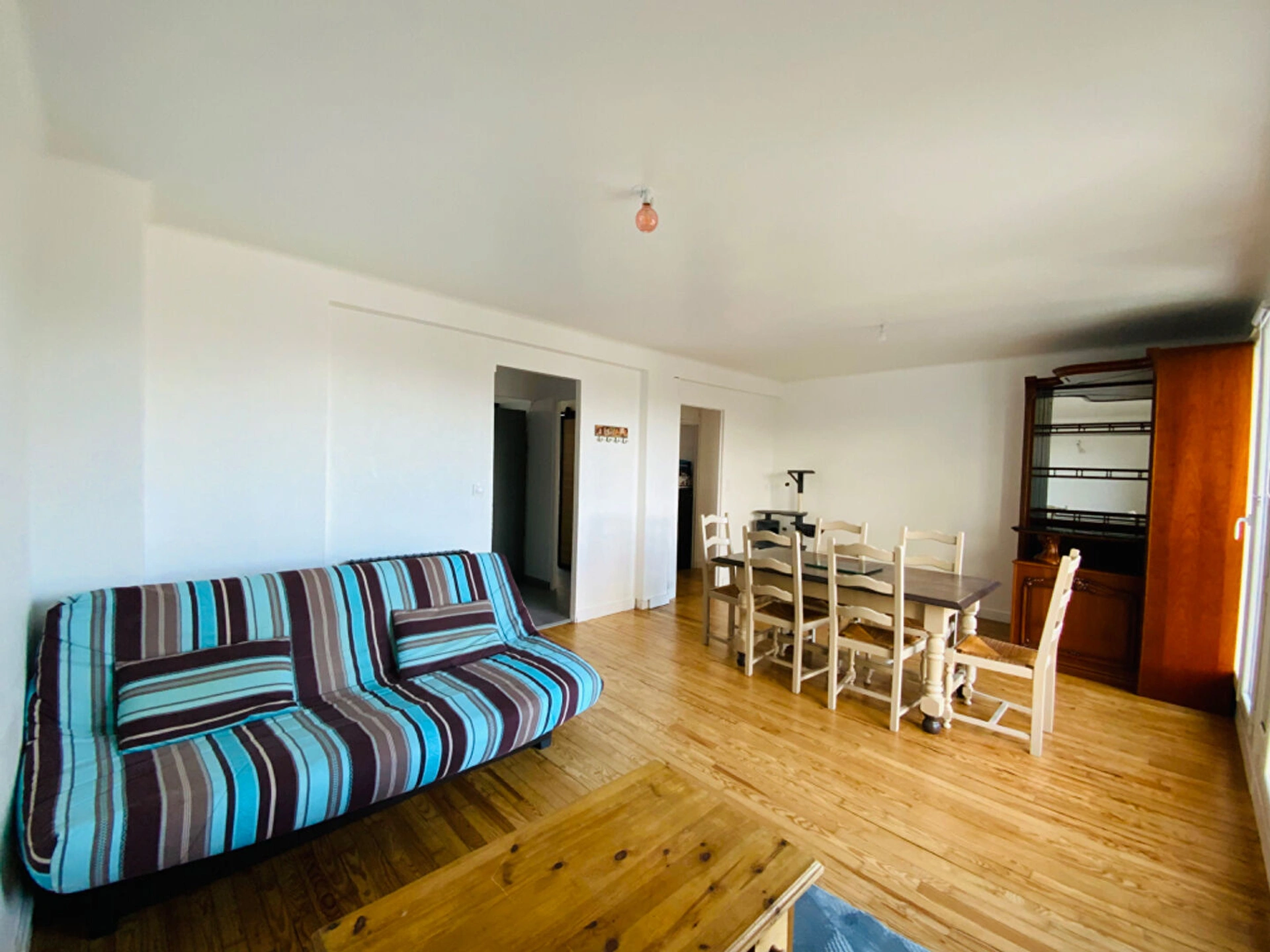 Situé au 1er étage d'une copropriété sécurisée et rénovée (isolation, toiture et ravalement), appartement de type 4 offrant : entrée, grande pièce de vie, cuisine aménagée et équipée, salle de bains, 2 chambres et la possibilité d'en créer une troisième.