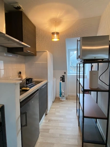 Actuellement loué en meublé étudiant dans le centre historique de la ville, situé au 4ème et dernier étage d'une petite copropriété, composé d'une pièce principale, cuisine aménagée et équipée, une salle d'eau avec wc, un espace nuit. Chauffage électrique. Loyer 430+20 euros de charges (communs et eau provisionnée). DPE E.