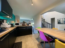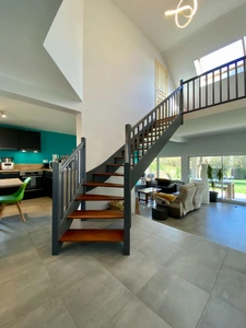Implantée sur un terrain arboré de 1000 m², vous serez séduits par les volumes généreux de l'espace à vivre au rez-de-chaussée avec son salon-séjour équipé d'un poêle à granulés, et sa cuisine entièrement aménagée et équipée, mais aussi par sa fonctionnalité avec ses DEUX chambres et sa salle de bains présentes sur ce plateau.