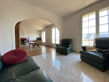 Au premier étage, palier desservant un salon-séjour de plus de 30 m² avec accès balcon et un bureau dans le prolongement, cuisine aménagée et équipée, une chambre avec placards ainsi qu'une salle de bains.