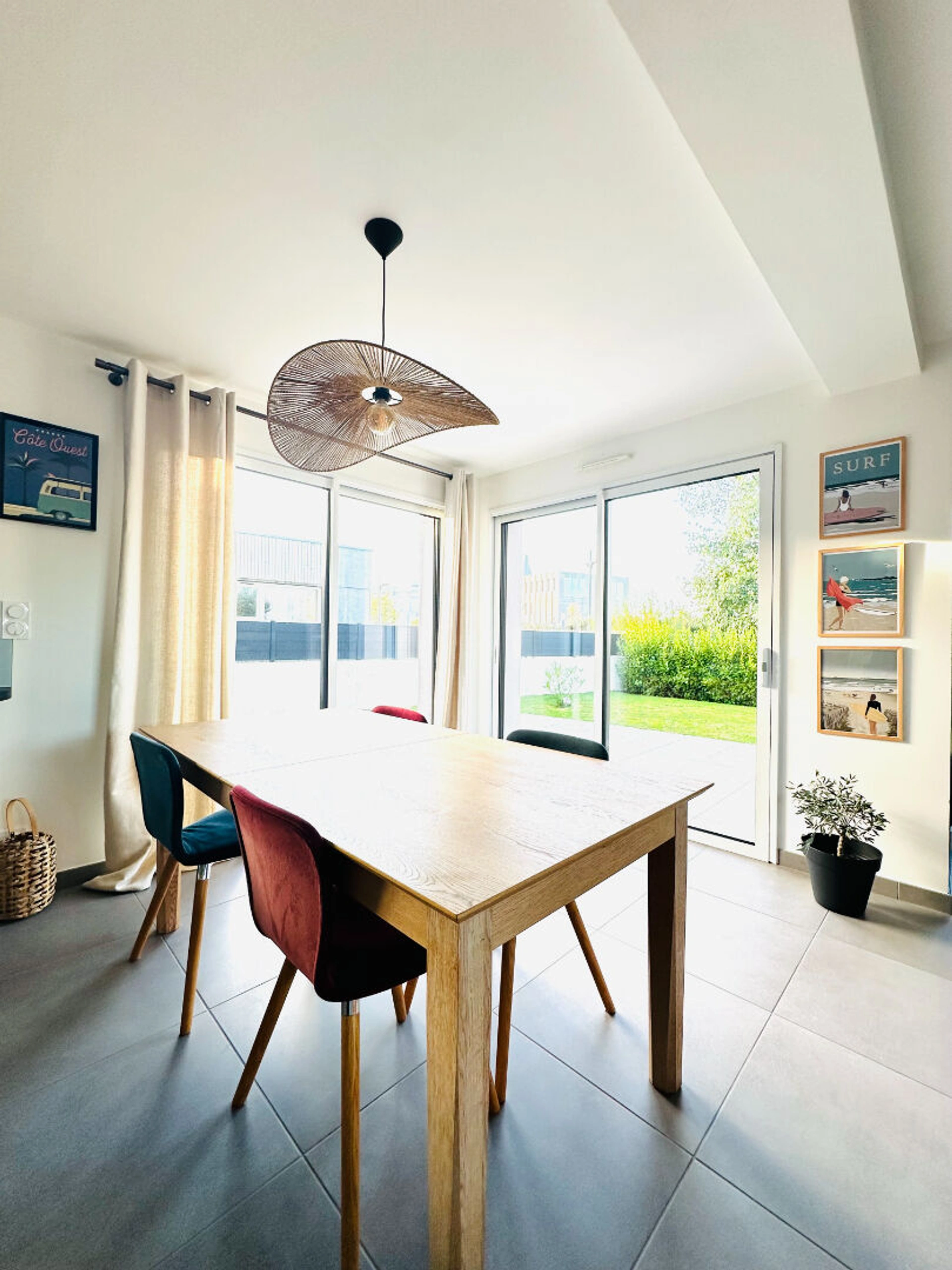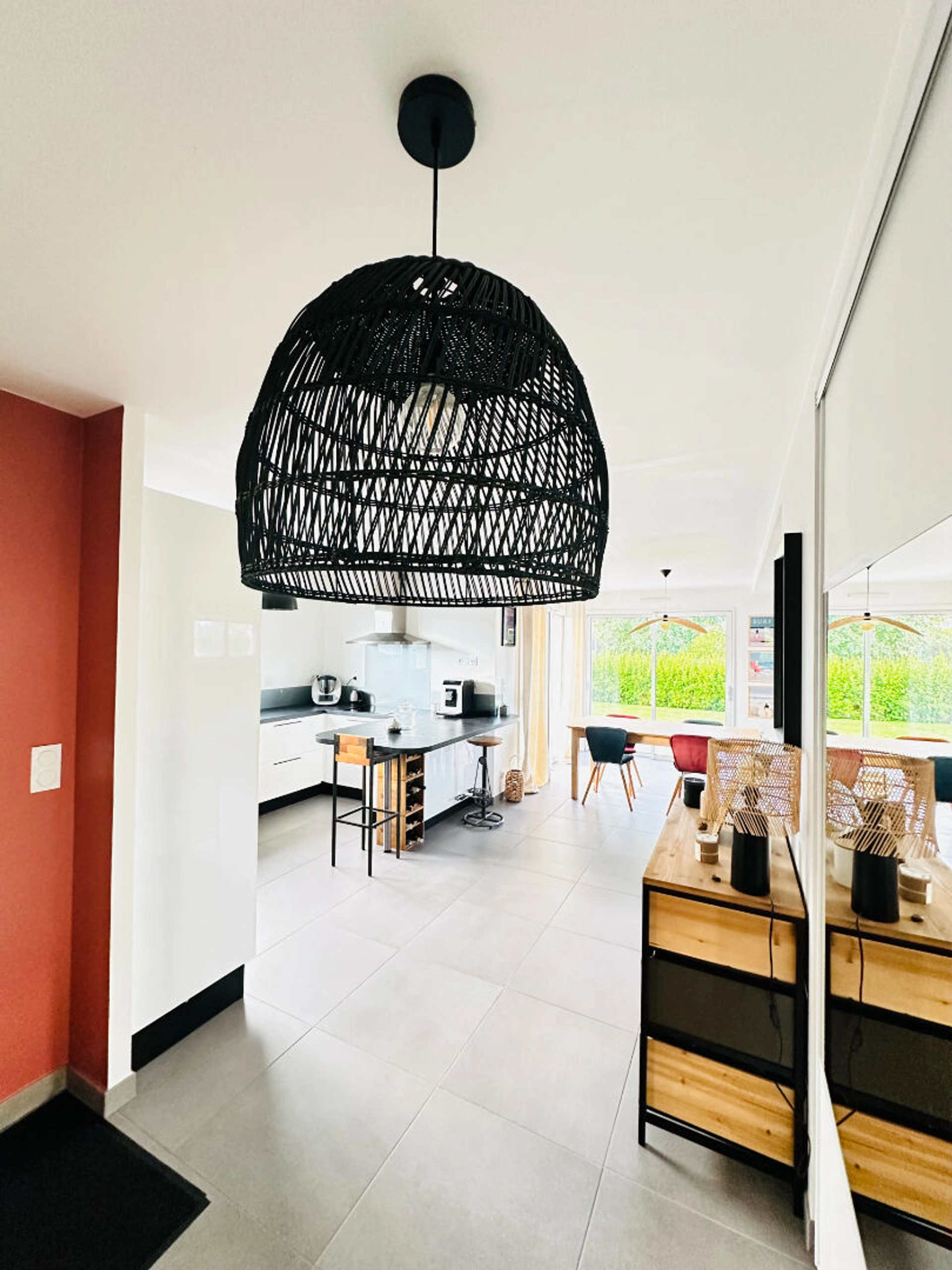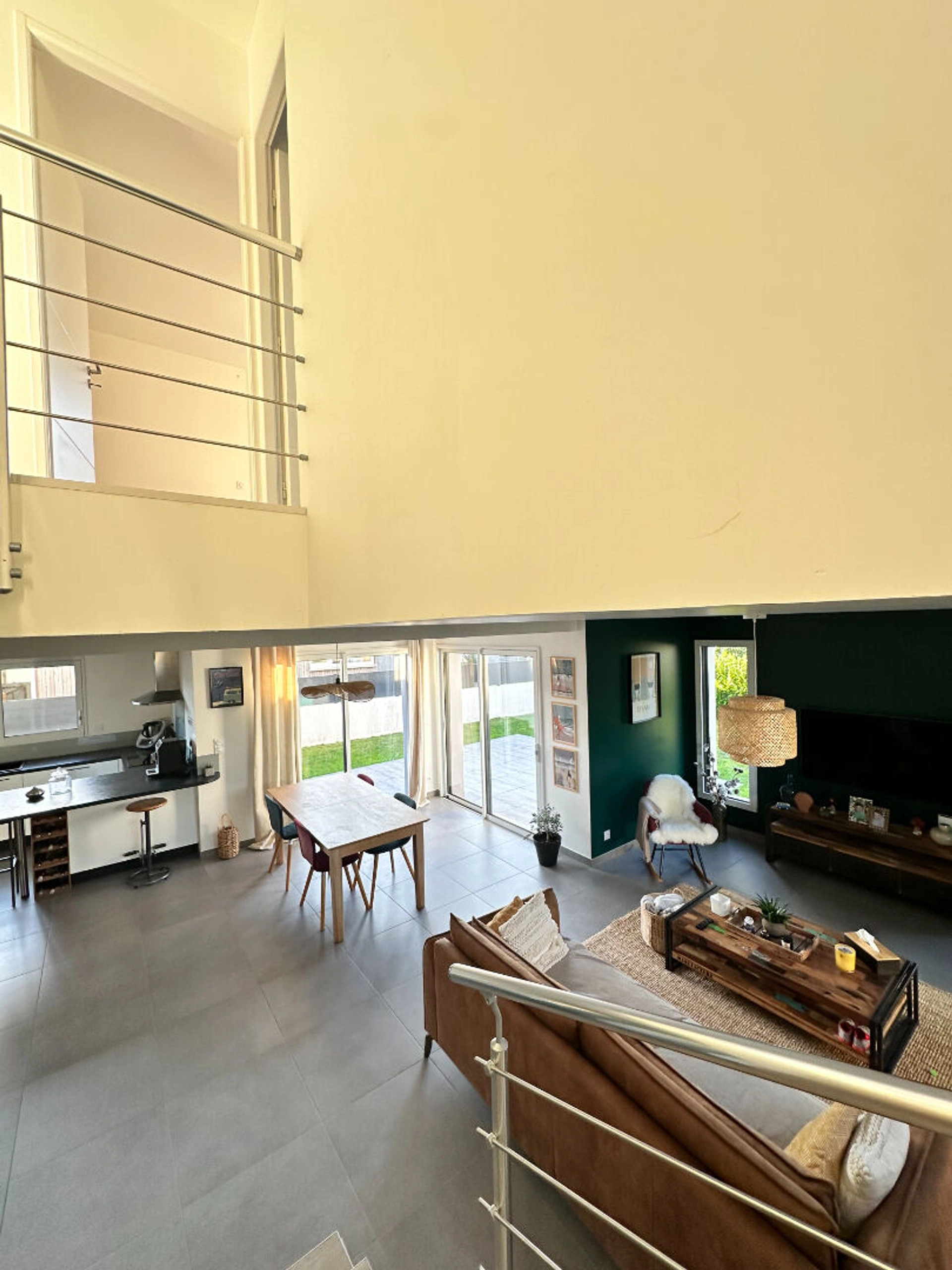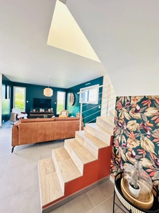 Le rez-de-chaussée offre une pièce de vie ultra lumineuse grâce à ses grandes ouvertures en aluminium, ouverte sur une cuisine moderne et équipée. En bonus, une terrasse exposée sud-ouest pour profiter du soleil toute la journée. Et le gros plus : une chambre et une salle d'eau au rez-de-chaussée pour une vie de plain-pied !
