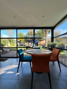 L'endroit parfait pour se réunir en famille ou entre amis, avec ses grandes baies laissant entrer la lumière naturelle et offrant une atmosphère chaleureuse et accueillante.
