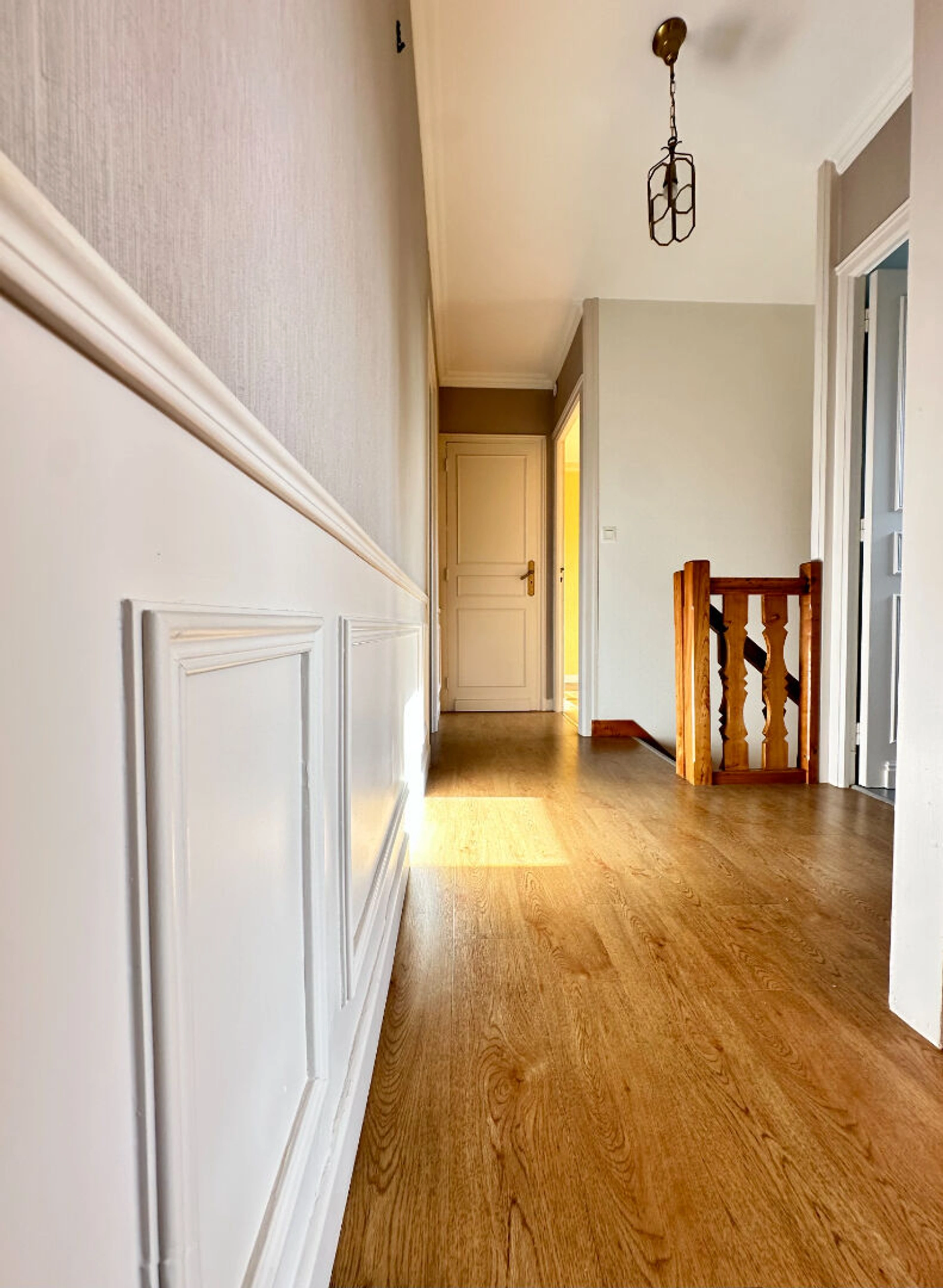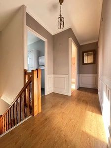 Avec une surface habitable d'environ 95 m², elle se compose au rez-de-chaussée d'une entrée, d'une chambre, d'une buanderie et d'un garage. A l'étage, on découvre un séjour lumineux ouvert sur une cuisine fonctionnelle, deux chambres sur parquet et une salle d'eau.